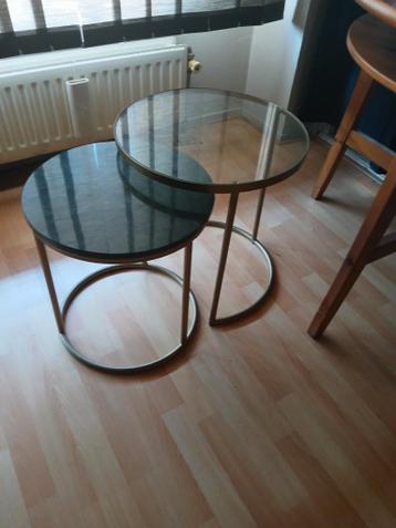 Vandaag!!! Op te halen tussen 10 en 14:00 uur. 2 Bijzettafels, lichte gebruikerssporen. Het groene tafeltje heeft een zware stene blad en het ander is van glas. Gratis gepast betalen aan de deur aub.