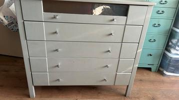 Gratis op te halen ladekast met 5 lades. De ladekast heeft een likje verf nodig en twee lades moeten nagekeken worden, maar kan zeker nog een ronde mee. Ideaal voor wie handig is en een projectje zoek