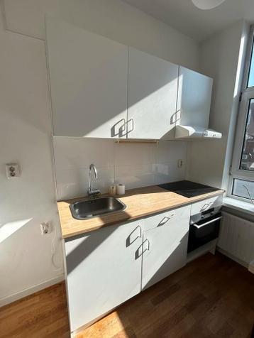 Gratis op te halen: een compleet keukenblok (keukenblad 182 cm breed) met boven- en onderkasten, inclusief een ingebouwde inductiekookplaat en oven. Ideaal voor een starterswoning, studentenkamer of a