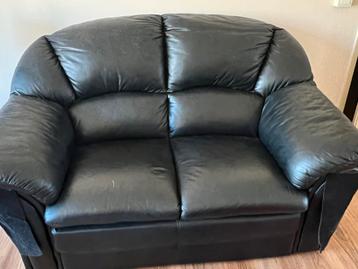 Gratis af te halen: comfortabel leren bankstel bestaande uit een 2-zitsbank en een 3-zitsbank. Het bankstel is gebruikt en heeft lichte beschadigingen, maar kan zeker nog een ronde mee. Ideaal voor bi