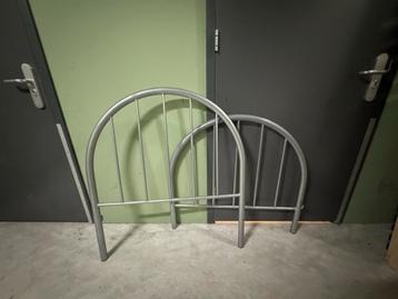Een stevig eenpersoonsbed van grijs mat ijzer. Het bed is makkelijk te monteren en gratis op te halen. Ideaal voor een kind, stude