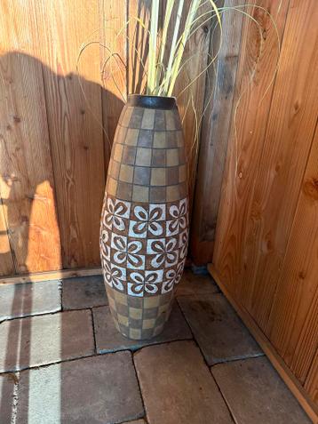 Prachtige grote vaas met een uniek mozaïekpatroon in bruine en witte tinten.