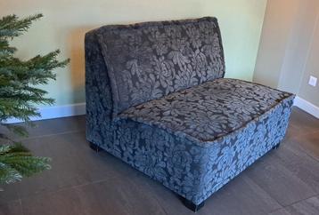 Zwart bankelement met ingeweven motief, ook los te gebruiken. Zit prima. Het gestreepte bankelement op de foto wordt apart aangeboden. Buitenmaten: 100 cm breed, 90 cm diep, 80 cm hoog (leuning) zitti