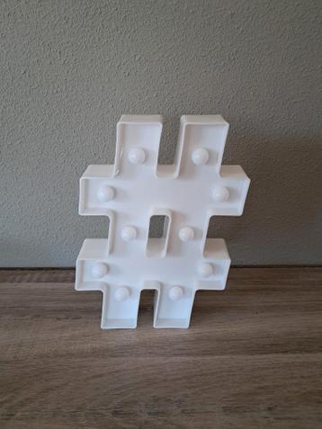 Lamp op batterijen in de vorm van een hashtag #. Ongebruikt.