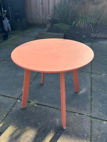 Zalm kleurige bijzettafel, gezellig voor buiten. Kan ook binnen in huis
