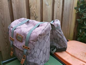 Oude, stevige fietstassen. 1 Sluiting is kapot en het nepleer is wat versleten. Misschien kan ik er iemand nog blij mee maken.