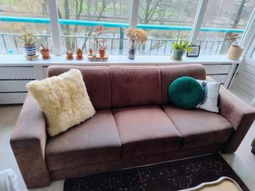 Gratis op te halen: bruine bank met gebruikssporen in overvecht. De bank is 240 cm lang, 75 cm hoog en 88 cm diep. Een armleuning is eraf geschroefd om de bank in de lift te laten passen, waardoor de