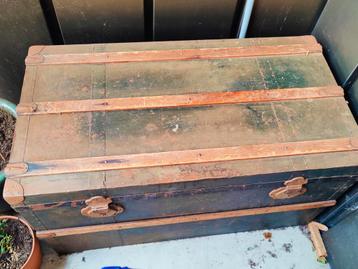 Robuuste vintage scheepskist, perfect voor liefhebbers van antieke en karaktervolle meubelstukken. Deze robuuste reiskoffer heeft een rijke geschiedenis, ideaal als decoratief element, opbergkist of z