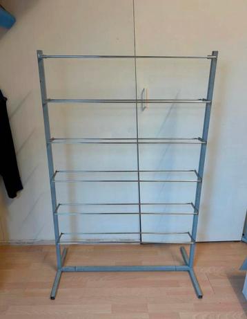 Dit metalen schoenenrek biedt een praktische oplossing voor het organiseren van uw schoenencollectie. Met meerdere niveaus is er voldoende ruimte voor diverse soorten schoenen. Het rek is ideaal om uw