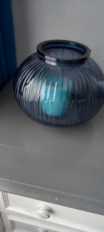 Mooie blauwe windlicht. Met kaars. Bieden vanaf 4.00