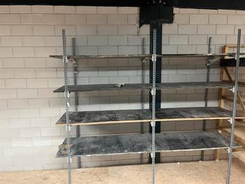 Gratis zelf demonteren alles in een keer meenemen aangeboden: een set van diverse opslagrekken, ideaal voor garage, magazijn of werkplaats.