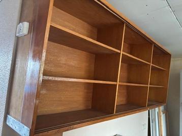 Leuk voor in de schuur of garage, deze hangkast. Niet nieuw meer, maar met een tikje verf nog heel geschikt voor de schuur. Maten: breed 212 cm 80 hoog. Boven 34 cm diep en onder 29 cm. Zwaar geval