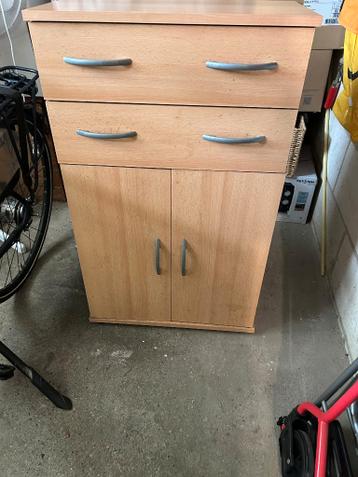 Kastje met 2 lades 1 laatje mis een schroefje in het schuif systeem maar kan nog steeds open en dicht hoogte 99 breed 60 diep 29