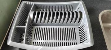 Praktisch afdruiprek in een neutrale grijze kleur, ideaal voor het drogen van borden, glazen en bestek. Het rek is gemaakt van duurzaam kunststof en heeft verschillende compartimenten voor een georgan