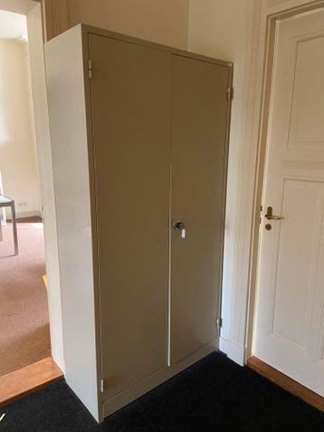 Hoge metalen kast met slot, 185 x 100 x 40. Staat op eerste verdieping, graag zelf naar buiten tillen.