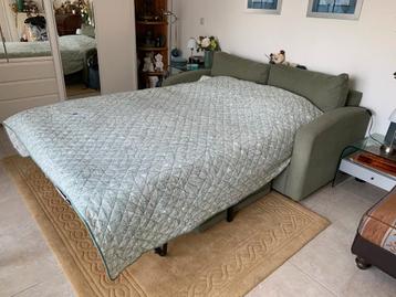 Slaapbank, uitklapbaar tot 2-persoonsbed. Matrasmaat 140x190cm. Buitenmaten ingeklapt: 178x98cm.