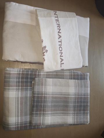 Twee gratis eenpersoons dekbedovertrekken. Eén met een geruit patroon in grijs/bruin tinten en één crème/beige met 'international' erop. Ze zijn gebruikt, maar nog in goede staat.