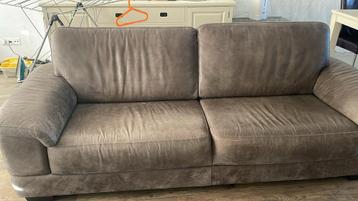 !!!!! Uiterlijk zaterdag ophalen !!!!! Deze comfortabele 3-zitsbank is gemaakt van geschuurd leer en verkeert in gebruikte, maar goede staat.
