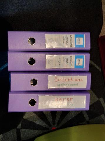 4 ordners met werkbladen e.d. Voor groep 3. Gratis af te halen, wordt niet verzonden!
