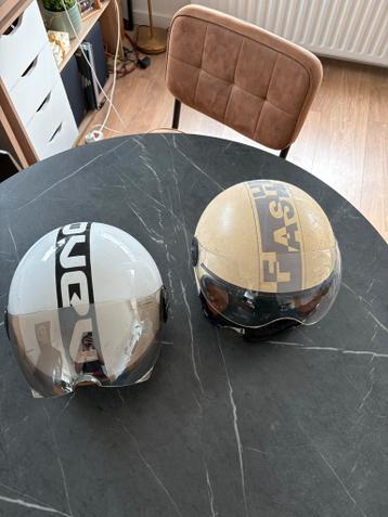Twee scooterhelmen aangeboden: één damesmodel in maat small en één herenmodel in maat xl. De herenhelm vertoont enige slijtage aan de binnenkant, zoals te zien op de foto's. De dameshelm is in per