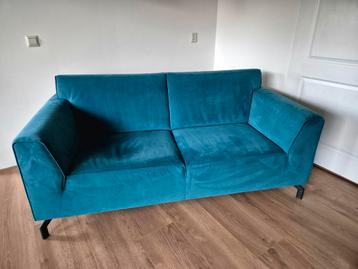 2 zits bank, niet heel intensief gebruikt. Gaat weg ivm nieuwe bank die past bij andere kleurstelling in woonkamer. Specificaties: breedte: 174 cm diepte: 91 cm hoogte: 81 cm kleur: petrol stoffering:
