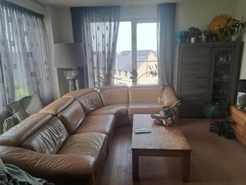Comfortabele leren hoekbank, inclusief een extra midden zitgedeelte dat niet op de foto staat. Ideaal voor een ruime woonkamer.