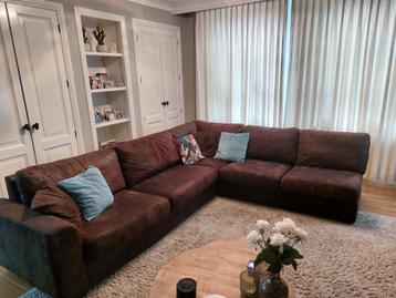 Ruime fijne bruine hoekbank gratis