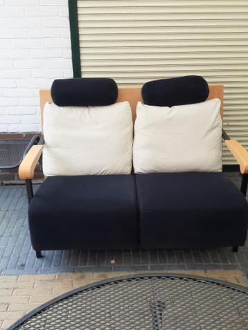 Comfortabel bankje met een zacht fluwelen zitkussen. Het bankje biedt heerlijk zitcomfort en heeft lichte gebruikerssporen, wat bijdraagt aan de charme. Perfect voor een knus hoekje in huis of op kant