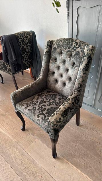 Voor maandag ophalen hoogte: 100cm breedte: 65cm diepte: 60cm diepte zitvlak: 47cm hoogte rugleuning bij zitten: 62cm hoogte zitting: 49cm let op: stoelen zijn beschadigd, boven op rugleuning heeft ka