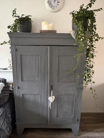 Deze mooie, van oorsprong donker teakhouten ( tv/computer) kast mag verhuizen🙃 de kast is gekrijt met een kwalitatief zeer goede verf, zie foto de buitenkant is donkergrijs en de binnenkant lichtgrij
