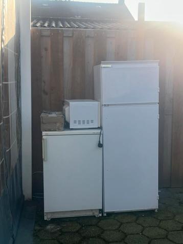 Aangeboden: een partij oud witgoed, bestaande uit een droger, een koelkast en een diepvries. Deze apparaten zijn niet meer functioneel en worden aangeboden voor oud ijzer. Ideaal voor de handige harry