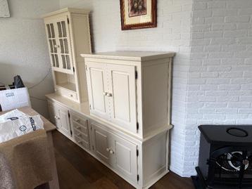 Wandmeubel massief eiken oisterwijk, creme geschilderd. 2,5 Meter breed, 0,50 diep