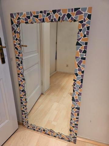 Spiegel met mozaiek rand ca 68 x 130 cm. Is zwaar en staat op eerste verdieping. Gratis op te halen maar zelf naar beneden tillen