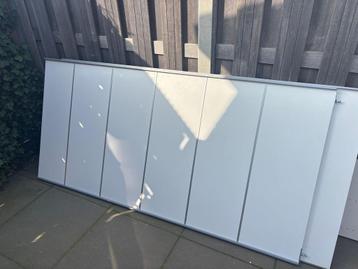 Set van gedemonteerde kastpanelen, ideaal voor hergebruik of als onderdelen voor een project. De panelen zijn gebruikt en vertonen lichte gebruikssporen, maar zijn nog in goede staat voor een tweede l