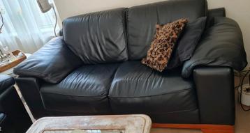 Zwart leren bankstel gebruikt maar kan nog een ronde mee. Bankstel gaat als set weg niet los. De bank is echt leer, wel lichte gebruikssporen: -een paar kleine niet storende krasjes/plekjes -bij een k