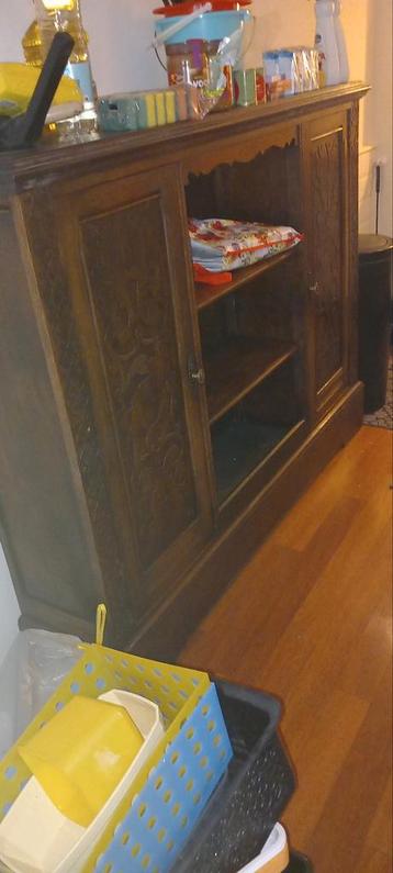 Mooi ondiep eiken kasje met de afmetingen hoogte 120 cm, breedte 160 cm en diepte 35 cm. Ideaal voor ruimtes waar een minder diep meubel gewenst is. Het kasje heeft een klassieke uitstraling en biedt