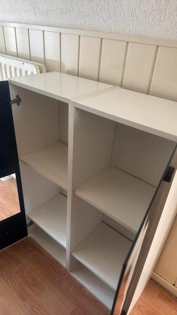 Twee hoogglans kasten het is bijna nieuw je kunt hem in de woonkamer zetten en er allerlei decoratieve spullen in plaatsen.