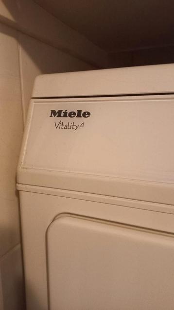 Een miele wasdroger met achter en zij uitgang met flexibele slang, ik verkoop dit omdat over is.