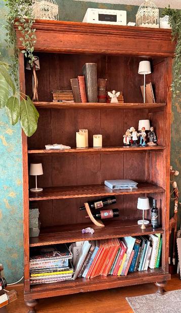 Antieke franse eikenhouten boekenkast. Afmetingen: 125 cm (b) x 208 cm (h) x 48 cm (d) eén van de achterpoten staat los onder de kast, dit was al zo toen wij hem kochten. Kan eventueel gerepareerd wor