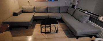 De bank is in redelijke staat en kan zeker nog even mee. Het is een bank van 3.20 Breed met 2 losse delen en vormt samen een u vorm het rechterdeel is iets breder dan het linkerdeel. We doen de bank w