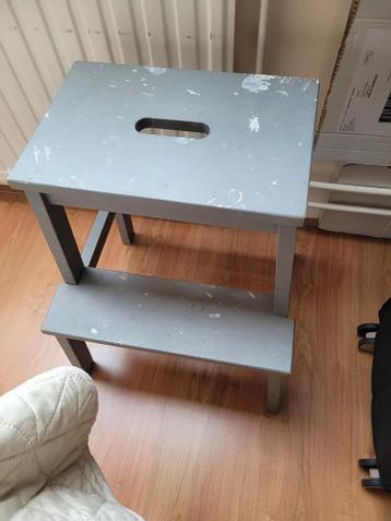 Handig ikea bekvam krukje, grijs geverfd. Ideaal als opstapje in de keuken of badkamer, of als bijzettafeltje. Het krukje is gebruikt en heeft wat verfschade, maar is nog steeds functioneel en stevig.