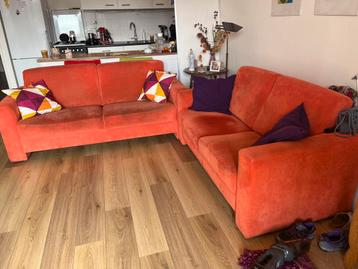 Hallo allemaal, hier een bankstel van een aantal jaar oud. We hebben heerlijk op deze banken gezeten. Ze zitten nog steeds heerlijk en zijn niet doorgezakt. Op de foto’s zie je wel dat er wat vlekken