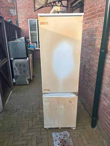 Gebruikte koelkast met vriesvak. Conditie is gebruikt, maar functioneert nog. Ideaal voor studenten of als extra koelkast. Inhoud is geschat tussen 150 en 200 liter. Hoogte is tussen 140 en 160 cm. Br
