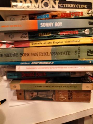 De boeken zijn gratis op te halen. Een verzameling van diverse boeken, waaronder klassiekers zoals donald duck, werken van enid blyton en 'sonny boy'. De boeken variëren in conditie, maar zijn