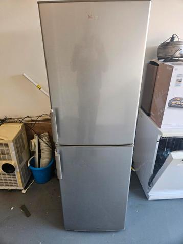 Gratis af te halen: een haier koelkast met vriesvak. De koelkast is gebruikt en heeft wat beschadigingen aan de handgrepen, zoals te zien op de foto's. De koelkast werkt nog naar behoren en kan pr
