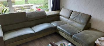 Deze hoekbank heeft zichtbare slijtagesporen op de zittingen en rugleuningen. De pocketvering lijkt op een aantal zitplaatsen kapot te zijn. De bank is groen van kleur. Lengte 3m., Breedte 2,30 m., Di
