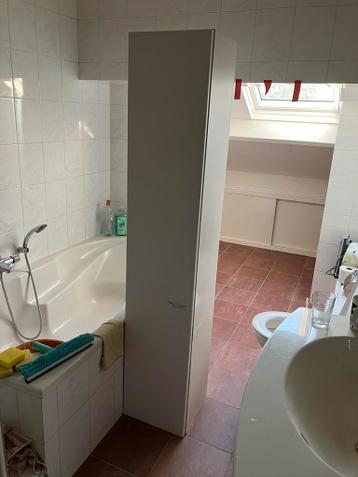 Gratis op te halen, moet zo snel mogelijk weg! Badkamerkast, afmetingen 180cm hoog, 35cm breed, 29cm diep. Kan hangend aan de muur bevestigd worden. Kleine beschadiging rechts onderin en op rechterzij