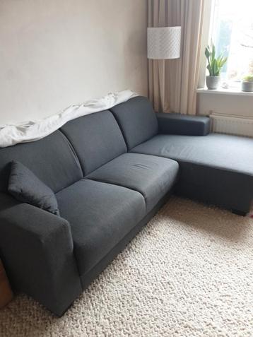 3 zits bank met voetenbank. Antraciet kleur. Stoffen bekleding. In prima staat. Gaat weg omdat ik een gekleurde bank heb gekocht. Zit nog goed, vooral het liggedeelte, is weinig gebruikt! Moet opgehaa