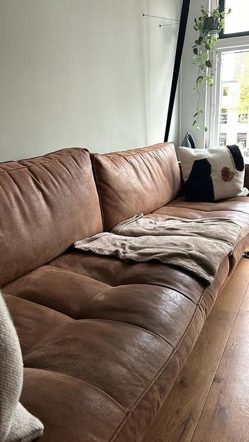 Mooie woood rodeo classic 3-zits bank in cognac ecoleer. De bank is gebruikt en heeft enkele gebruikssporen, zoals te zien op de foto's, maar verkeert verder in prima staat.