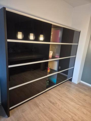 Nette, stevige vakjes kast. Er zaten 5 witte semidoorzichtig panelen bij. Ik heb zelf 16 zwarte glanspanelen erbij gekocht ter afwisseling. Beide mogelijkheden staan op de foto's. B228 x d40 x h18